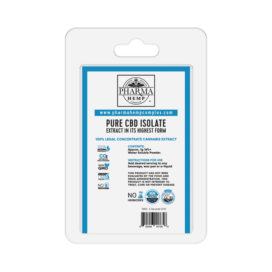 Pharma Hemp Complex water soluble CBD isolate powder is tasteless and odorless making it easy to work with. Made without any fillers, there is only one ingredient in this product: hemp.